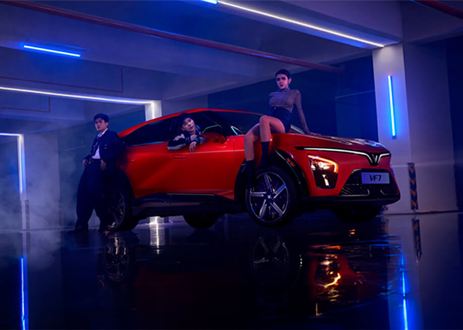 Lấy cảm hứng từ tinh thần thời trang phóng khoáng và cảm giác adrenaline bùng nổ khi đạt tốc độ cao, TMRW đã xây dựng một phong cách đậm cá tính cho VF 7. Bảng màu táo bạo, bố cục tối giản nhưng sắc nét, cùng ánh sáng tinh tế - tất cả các yếu tố đều được trau chuốt kỹ lưỡng để tôn lên vẻ thời thượng và tinh thần bứt tốc của VF 7.